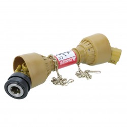Wały posiadają bezpieczne i wygodne szybkozłącze, które trzyma wał na końcówce WOM. Osłona wału wykonana jest z mocnego elastycznego materiału, co sprawia, że jest trwała i bezpieczna, a wał staje się łatwy w montażu. Wałki spełniają wymogi europejskiej dyrektywy dotyczącej bezpieczeństwa pracy.